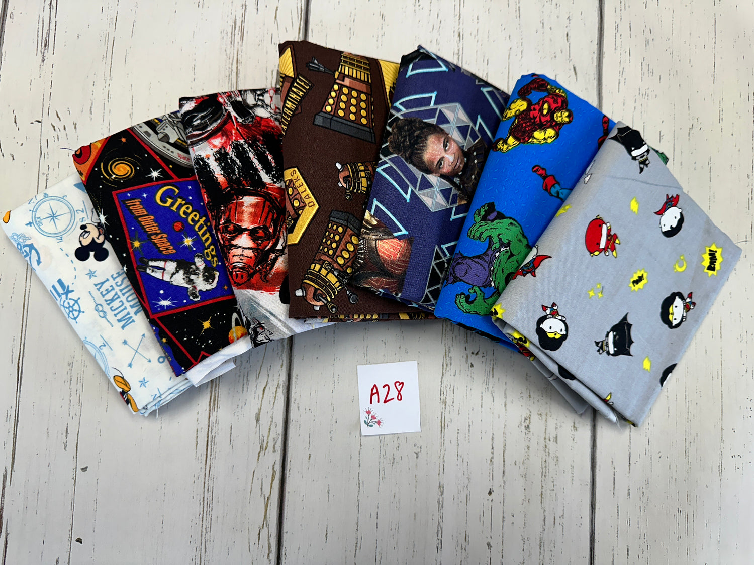 Estimated 5 yards of 43/44" Wide 100% Cotton Fabrics. Most pieces are less than 1/2 yard in length