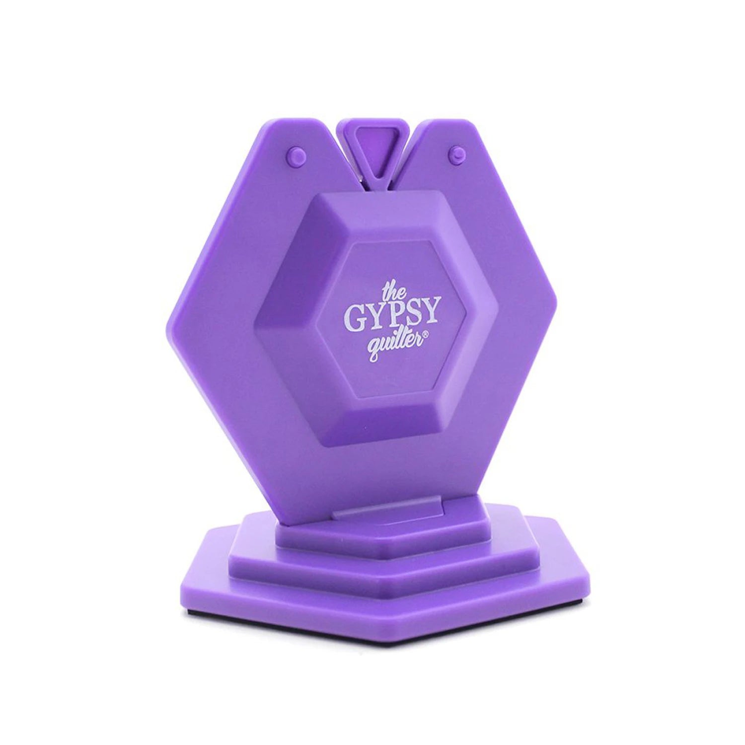 Reduce thread cutting time with the Gypsy Quilter Chain-Piece Cutting Gizmo. It is the extra hand you need to help separate chain-pieced units when quilting. To safely cut the threads between the chain-pieced units, simply hold the fabric pieces with both hands and slip the thread into the slot on the top of the Chain-Piece Cutting Gizmo. The embedded razor blade cuts the thread quickly, easily and safely. The non-slip bottom ensures that it will stay in place when in use. Five replacement blades and the magnetic tool needed for blade changes are stored in the base.