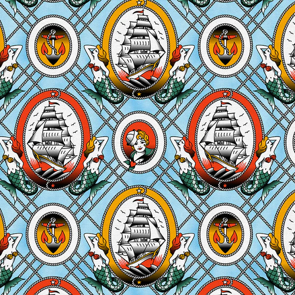Timeless Tattoos Sailor Tattoos Blue 38025892 BLUE Organic Cotton Woven
