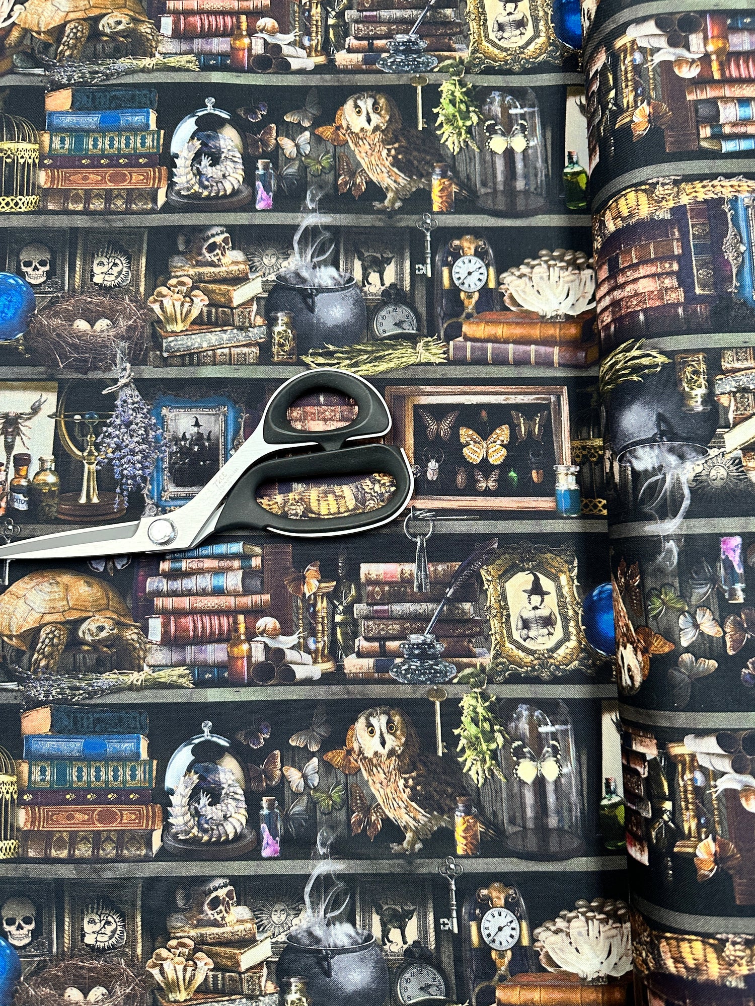 Mad Scientist Apothecary Witch Apothecary Book Shelf LIBRARY-CD2877-BROWN Cotton Woven Fabric