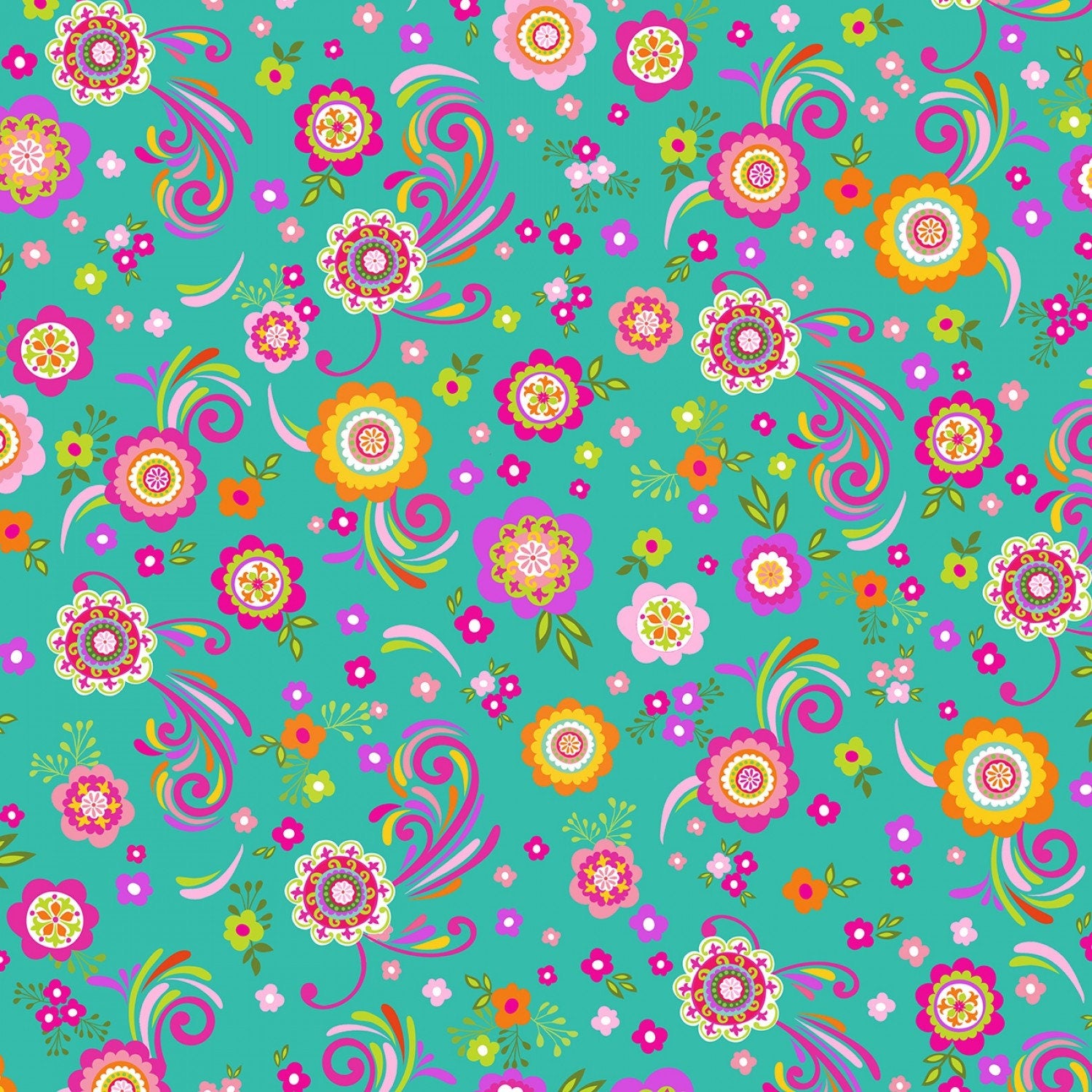 Feathers and Foliage by Pink Chandelier Teal Flowers & Scroll 70455-753 Cotton Woven Fabric