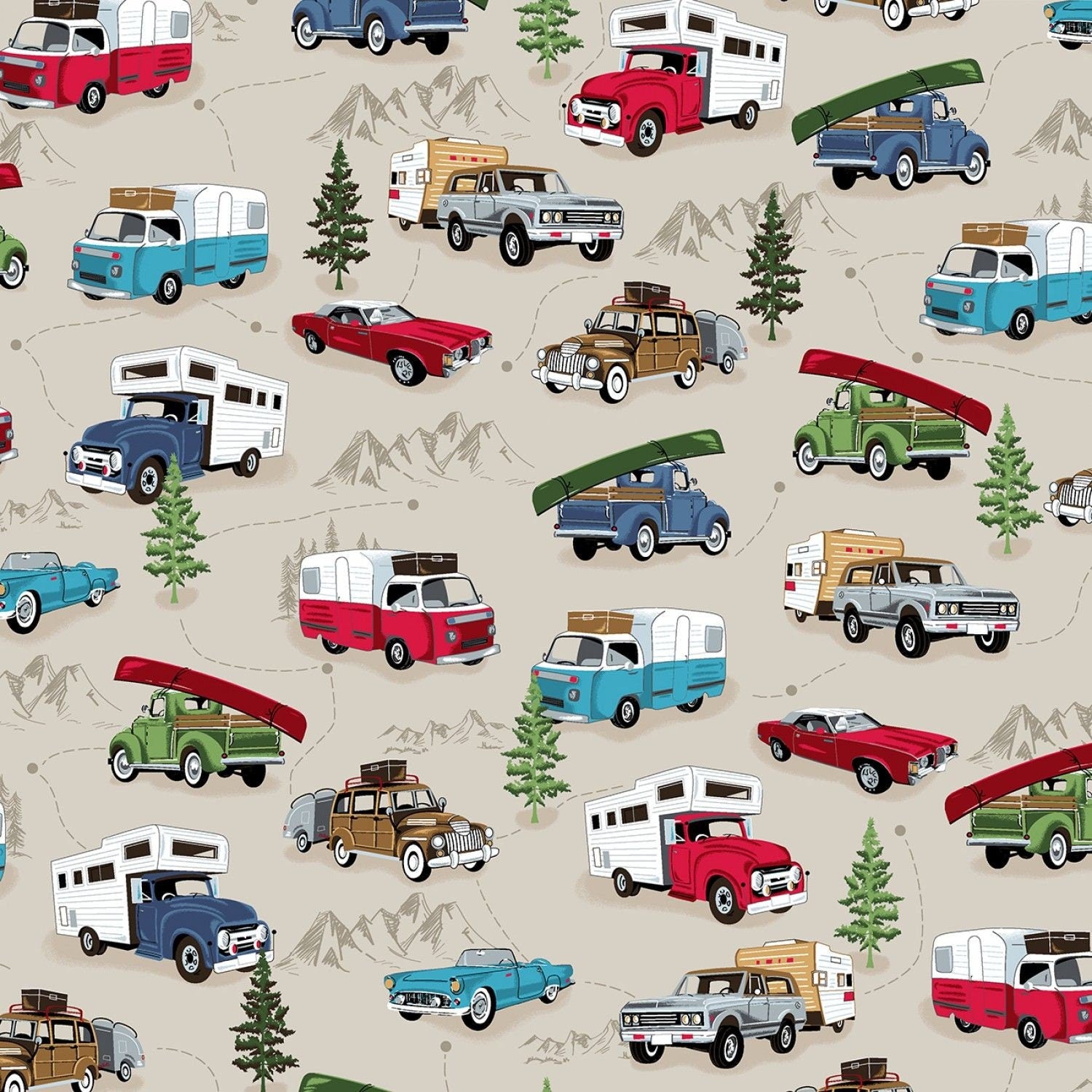 American Road Trip by Whistler Studios Camper Trailers Neutral 52335-2 Cotton Woven Fabric