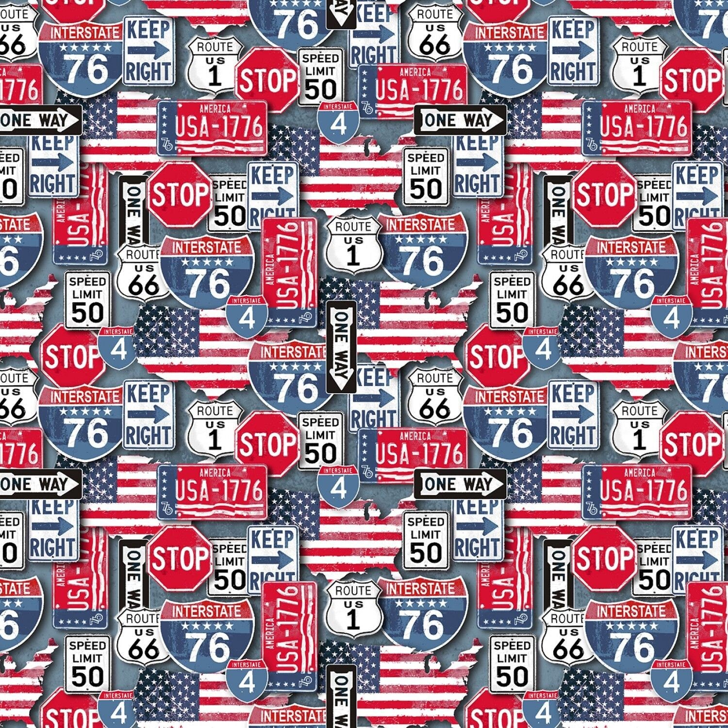 American Road Trip by Whistler Studios License Plate 52336-X Cotton Woven Fabric