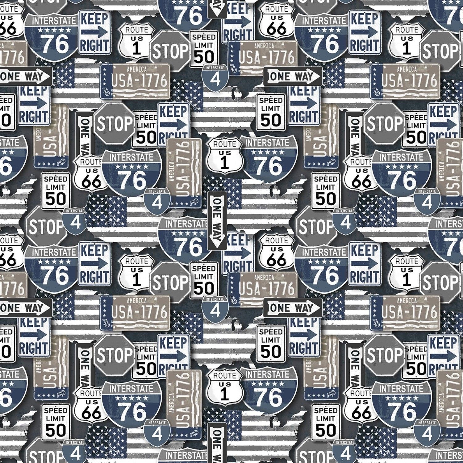 American Road Trip by Whistler Studios License Plate Blue 52336-3 Cotton Woven Fabric