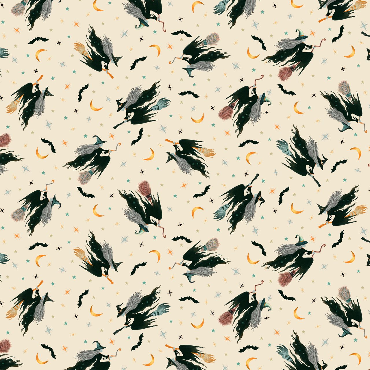 Preorder June 2026: Witchy Wicked Witches Flying on Broomsticks Cream 4864-41 by Rose Halsey